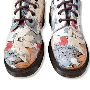 Dr. Martens RARE Pascal Botanic Floral Sand Print 8 Eyelet Lace Up Combat Boot
