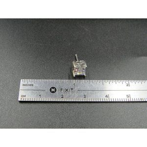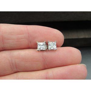 Sterling Silver Square Bright Simple CZ Stud Earrings Vintage Wedding Engagement