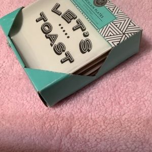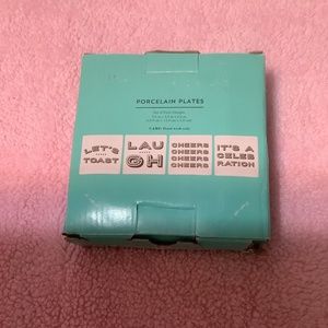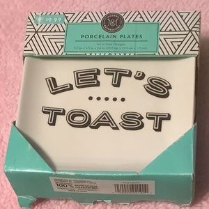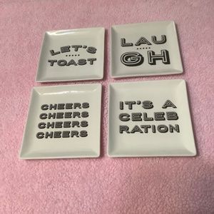 These are a neat set of plates from Modern Expressions. They are brand new! Each one has a different saying (please see pictures). They measure 5.5 inches by 5.5 inches each. I purchased these years ago but never used them. If you have any questions, please ask before purchasing.