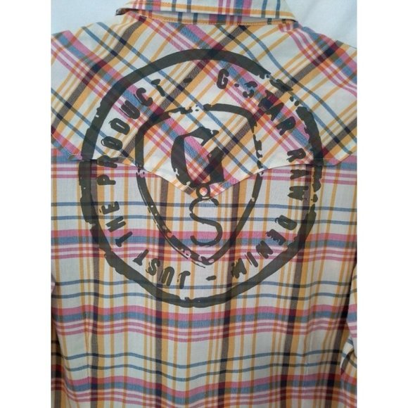 G-Star Raw Mens Long Sleeve Shirt with Pearl Snap Buttons and Large Logo - Sz L