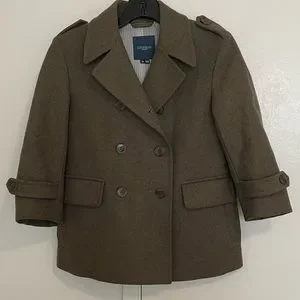 Gryphon New York Olive Shrunken Wool Pea Coat Double Breasted Size XS