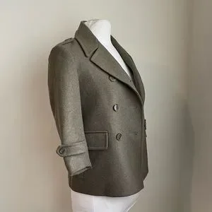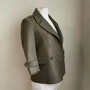 Gryphon New York Shrunken Wool Blend Pea Coat Olive Green. Size XS Double Breasted Fully Lined. 4 working pockets. 2 Side Slash pockets & front flap pockets. 80% Wool / 20% Polyester. EUC- No stains, flaws - all buttons & details in excellent condition. Made in Japan. SAME DAY SHIPPING