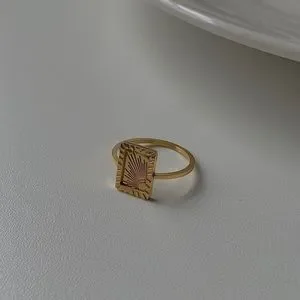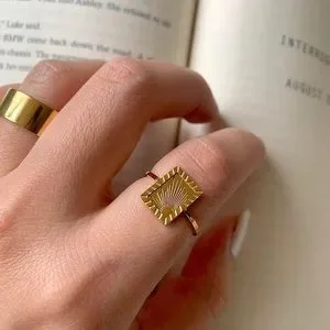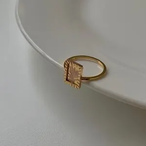 18k gold rising sun signet ring, gold signet ring, sun signet ring,sunburst ring