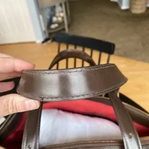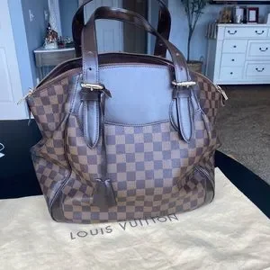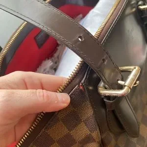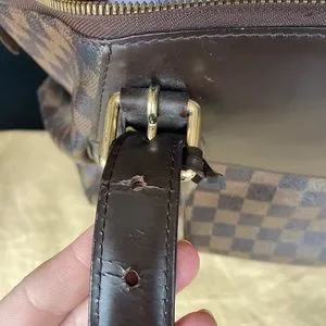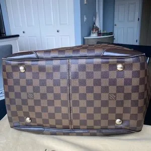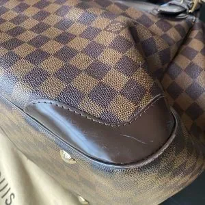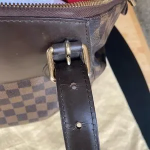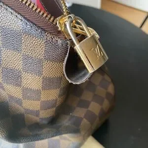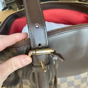 RARE- and beautiful Louis Vuitton MM Damier Ebene shoulder bag. Has some light marking on corners. & bottom. Slight cracking around shoulder straps and gold hardware is fading some. Slight marking in the inside bottom of red cloth( see photos) and probably can be sent out for cleaning and maintenance of bag. Overall in great shape and has lots of life left! Please see pictures for additional details about wear and condition of bag and Iโm happy to answer any additional questions! Thanks for stopping by!๐๐ Dust Bag included!