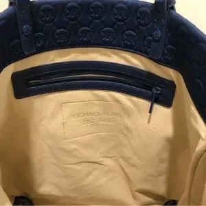 Michael Kors Neoprene & Patent Leather Tote Gently Used. Excellent Condition! Removable, adjustable straps, footed bottom. Interior is a soft ultra suede with a large zipper pocket and 2 open cell pockets. Perfect for work, school & gym. A few scratches on the bottom as shown but otherwise great condition.