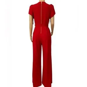 Calvin Klein red tulip sleeve wide leg romper jumpsuit