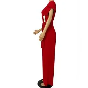 Calvin Klein Red Tulip Sleeve Waist Tie Jumpsuit