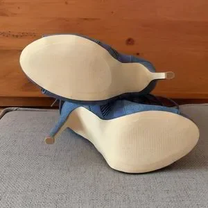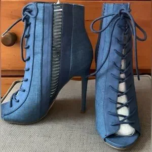 Classy Blue Denim Lace Up Bootie, sz 7