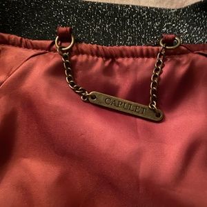 Silk, maroon colored bomber jacket with embroidery on the back, rarely worn.