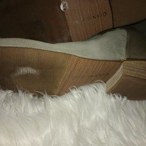 Gianni Bini Tall Genuine Suede and Leather Hidden Wedge Heel Pull-On Riding Boots. Size 9 1/2 fits a size 9 comfortably. From Anthropologie, Olive green goes with everything. Sides have woven braided leather detail. Hidden heels are 3" tall when added to outside heel. 19” tall from sole to top, 16” around opening, 9.5” long across the sole. Leather, suede in good used condtion :) No damage on the outside at all.