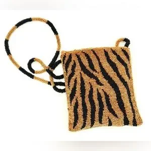 Gorgeous Vintage Glass Beaded Tiger Stripe Crossbody Bag!! Perfect for a night out on the town! It can carry your essentials and keep you looking fabulous while being hands free.