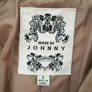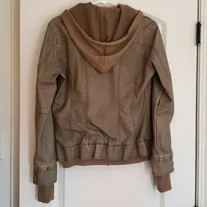Made By Johnny MBJ • Womens Khaki Leather Motorcycle Jacket with Hoodie • Size S