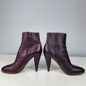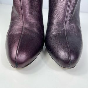 PRADA Women’s Plum Metallic Bronzed High Heel Side Zip Ankle Boots Booties 39.5