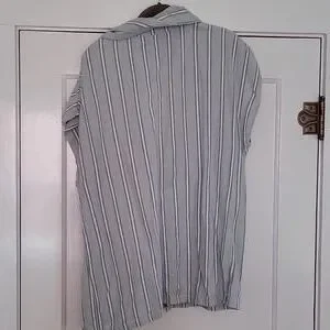 I love the Kiki. It has dolman style short-sleeves, comes with a belt, in great used condition. One small stain that looks much brighter in the close-up pic (the stain is slightly pink).