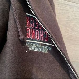 Check this dope Cheech & Chong Brown Zip-Up Hoodie out! New old stock from 2008! Nice embroidery on left and right chest! On an Independent Trading Company blank! Nice and cozy.