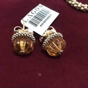 Elevate your jewelry collection with these stunning LAGOS citrine and sterling silver stud earrings. Featuring beautifully carved golden citrine gemstones, set in signature Caviar beading sterling silver, these earrings offer timeless elegance and sophistication.
