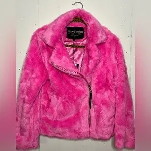 BRAND NEW WITH TAGS BLACK LABEL JUICY COUTURE Y2K hot pink faux fur Moto coat with gold hardware details. Super super warm! Very soft and stylish for the winter. Originally $300 in perfect condition so hoping to sell for no less than $200 or best offer!
