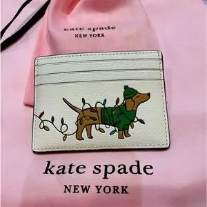 Kate Spade dachshund card holder / case NWT Claude Christmas wallet bag