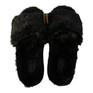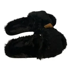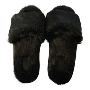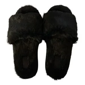 VS PINK Faux Fur Slippers Various Sizes Black