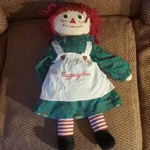 Raggedy Ann and Andy in Christmas 🎄 Outfit. 23" tall. There are a few stains on Ann's apron. pls see pic.