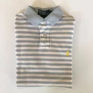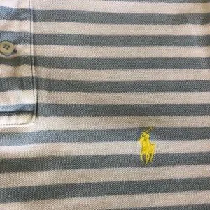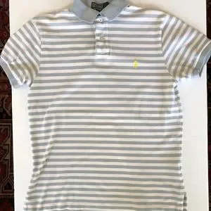 Men’s Ralph Lauren Polo striped light blue shirt. Custom fit. Pit to pit measures 19” inches. Some light fading on the collar where it turns down. Not really noticeable. No trades.