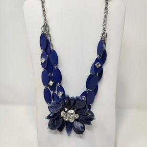Ann Taylor Loft Blue Stone Metal Silver Tone Chain Statement Necklace Flower