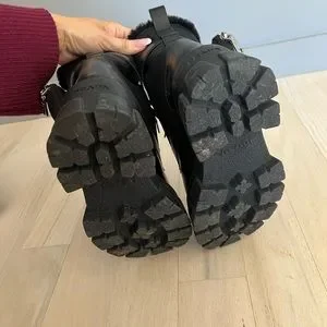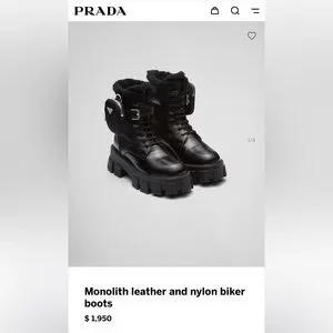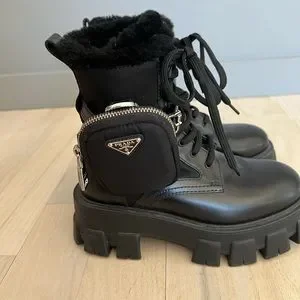 PRADA monolith leather and nylon biker boots with shearling lining black size 35