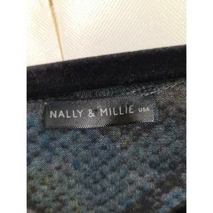 Nally & Millie Womens Tunic Top Size Large Gray Blue Snake Print Dolman V-Neck