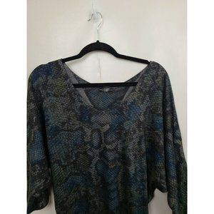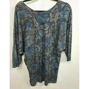 Nally & Millie Gray Blue Snake Print Dolman V-Neck Tunic Top Size Large