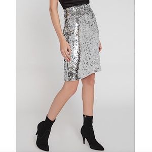 Alice + Olivia Silver with Tag Ramos Sequin Pencil Skirt