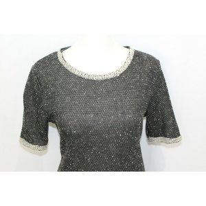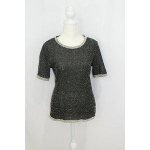 CAbi Womens Style 542 Black Grey Tweed Coco Shell Short Sleeve Sweater S