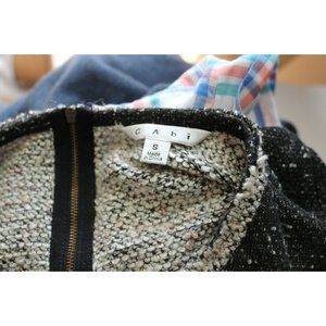 CAbi Women's Style 542 Black/Grey Tweed Coco Shell Short Sleeve Sweater. Size Small, Good Condition. Back zipper. 60% Polyester, 36% Acrylic, 4% Cotton.