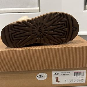 Brand new in original box kids tall sheepskin boots. Chestnut color, children’s size 1.