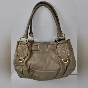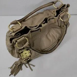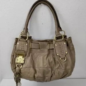 JUICY COUTURE Taupe Leather Satchel Shoulder Bag Handbag