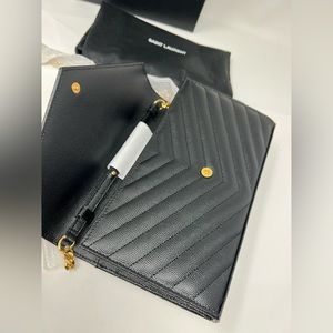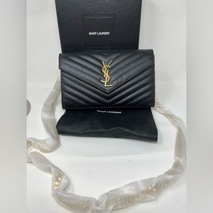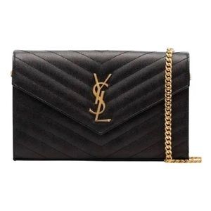 Saint Laurent Monogram Envelope Wallet on Chain Shoulder Matelasse Black Caviar Leather Cross Body Bag