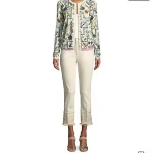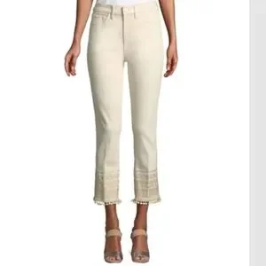 SOLD ‼️ Tory Burch Women's Lana Embroidered Cuff Jeans Pompom NWT $248.00 27 SM