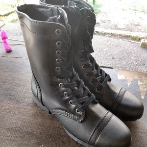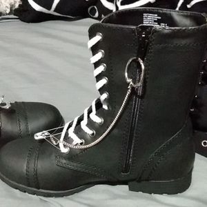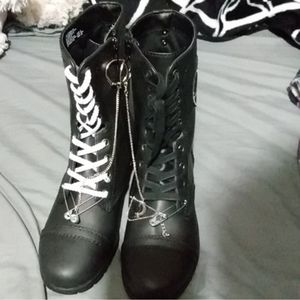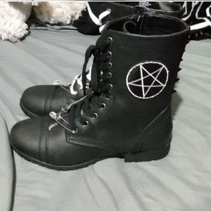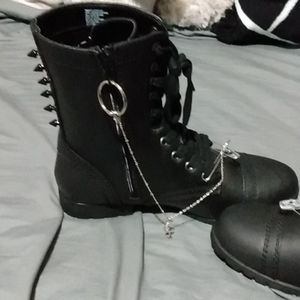 I diy-ed these shoes myself since it was a gift for me but I don't wear a size 8 so they are brand new never worn. they have spikes on the back and chains and a pentagram patch on the side. original tags are from time and Tru . i added a before picture as well