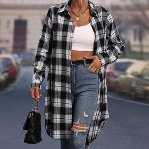 Multicolor Preppy Womens Tartan Print Button Front Coat