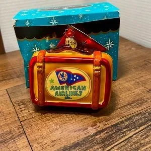 Vintage Christopher Radko “AMERICAN AIRLINES BON VOYAGE” Christmas Ornament Travel “SUIT CASE” Large Size