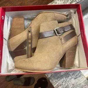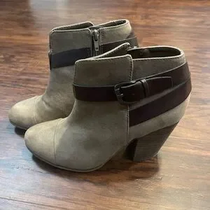 EUC. No flaws. Taupe suede material with brown strap and side zip closure.