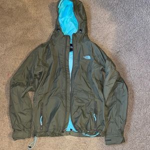 The north face Hyvent jacket size small. Beautiful Olive green with turquoise color. Brand new