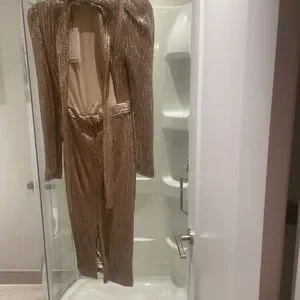 Long sleeves, backless, shoulder pads, sexy cocktail dress