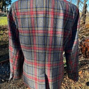 🦊Vintage Chadwick’s Boston Grey/Red Plaid Wool BlazerJacket Sz14P Holiday Ready