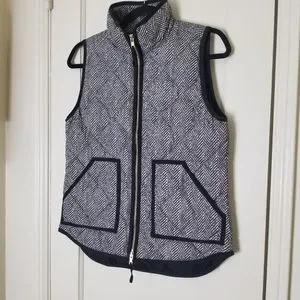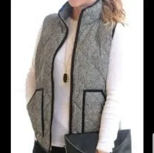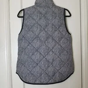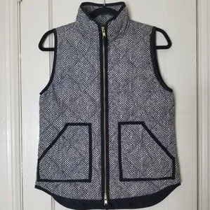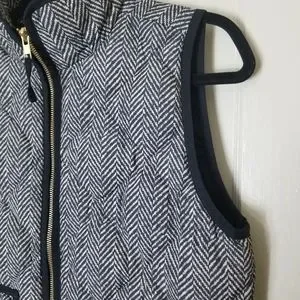 J CREW black cream chevron print down filled zipper sleeveless jacket ve…
