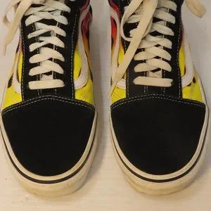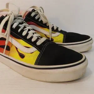 men's or women's VANS Old Skool Flames low top suede and fabric sneakers, men's size 8 M and women's size 9.5 M.