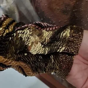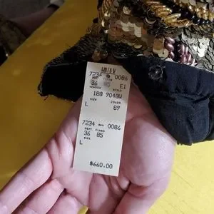 Wow, just wow! This dress is a stunner! In perfect unworn NWT condition. Original tag show purchased for $660.00! I-Magnin. 100% Silk with Rayon lining. Dainty shoulder pads to structure the shoulder slightly. Back hidden zipper with hook & eye closure top. This dress is substantial & you can feel the weight of the quality and hand-sewn real beads. Seed beads & tiny glass beads with fabric crumpled flowers. Golds, taupes, black & cream. The best part is no one else will have this dress on at any event because it is old stock❤