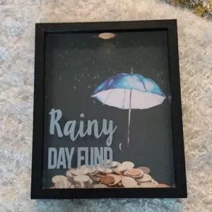 🆕 ⛈️RAINY DAY GLASS PICTURE FRAME MONEY 🏦