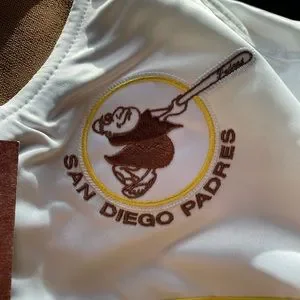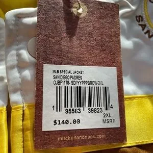 Men's San Diego Padres Mitchell & Ness Brown/Gold Coaches Satin Full-Snap Jacket. Size is 2XL