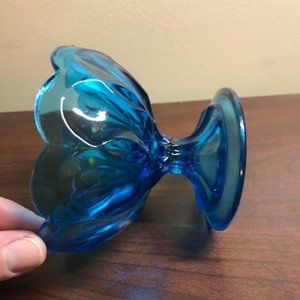 Vintage Anchor Hocking Blue Scalloped Glass Pedestal Compote Bowl Candy Dish