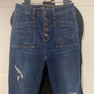 Judy Blue does it again in the incredible stretch skinny jeans, featuring a button fly, perfect amount of distressing, & medium/dark wash!! Women’s size 27. Lots of stretch!! Worn twice, in excellent condition!!